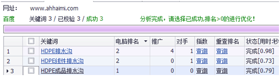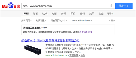 2.客户自行编写的网站TDK不正确因为缺少对优化的了解所以写的不符合百度的标准,他原来的标题是:线性排水沟_雨水收集-安徽海米辛材料有限公司。我们在修改完以后是这样的:HDPE线性排水沟_HDPE成品排水沟_线性排水沟_安徽海米辛材料有限公司。这样做也就包含要做的关键词了,使排名出现的更快。